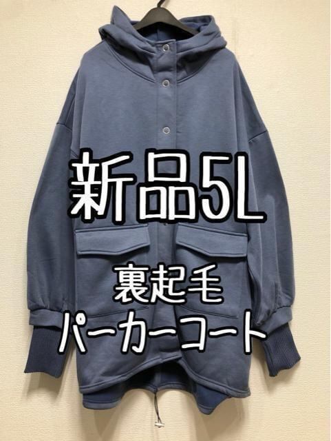 新品☆5L♪ブルー系♪裏起毛あったかビッグシルエットパーカー☆w588