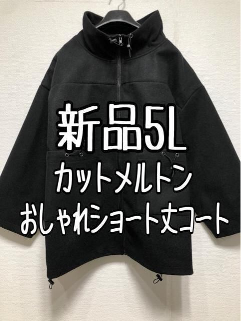 新品☆5L♪黒系♪カットメルトンあったかショート丈コート☆w609