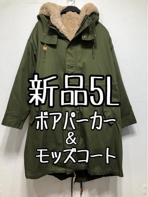 新品☆5Lカーキ系♪5wayモッズコート&ボアパーカー♪2枚セット☆w624