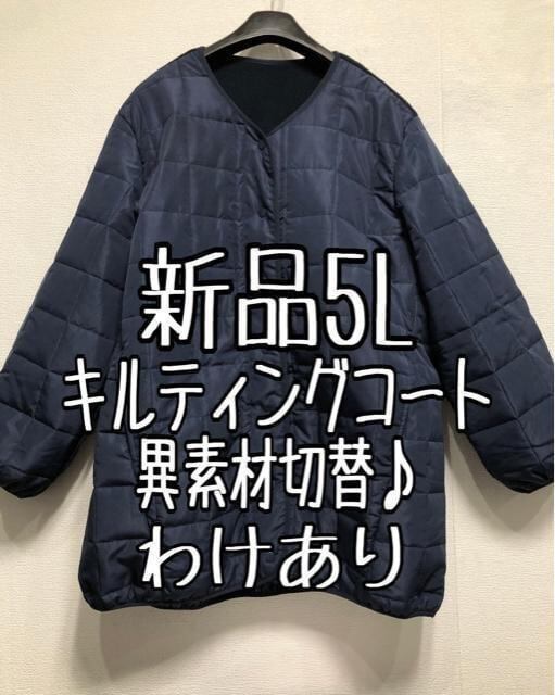 新品☆5L♪ネイビー系♪キルティングコート♪動きやすい♪わけあり☆z717