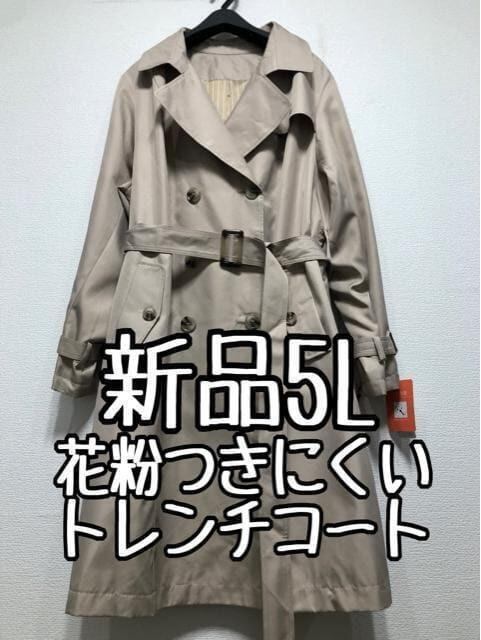 新品☆5L♪ベージュ系♪花粉つきにくいトレンチコート♪防汚はっ水☆w555