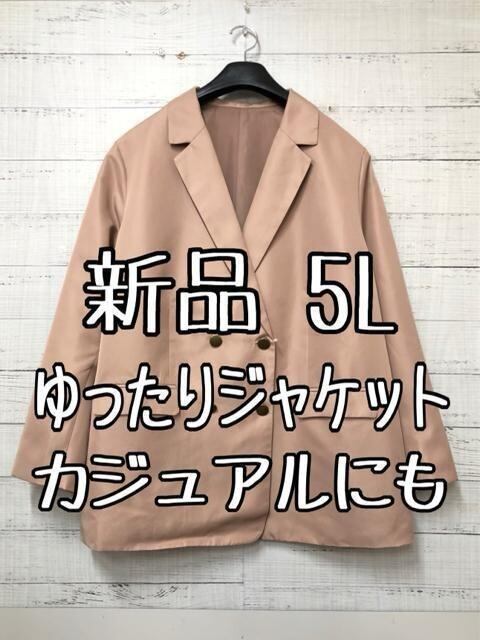 新品☆5Lベージュ系ボックスシルエットダブルジャケット♪カジュアルにも☆t461