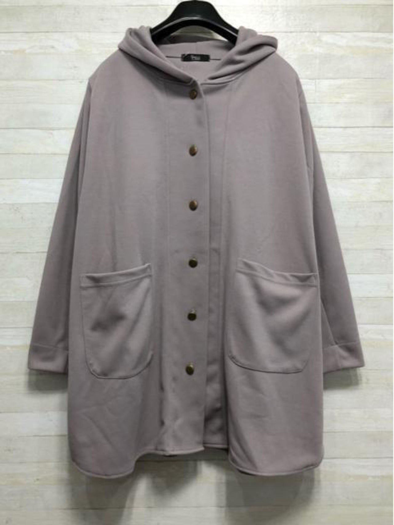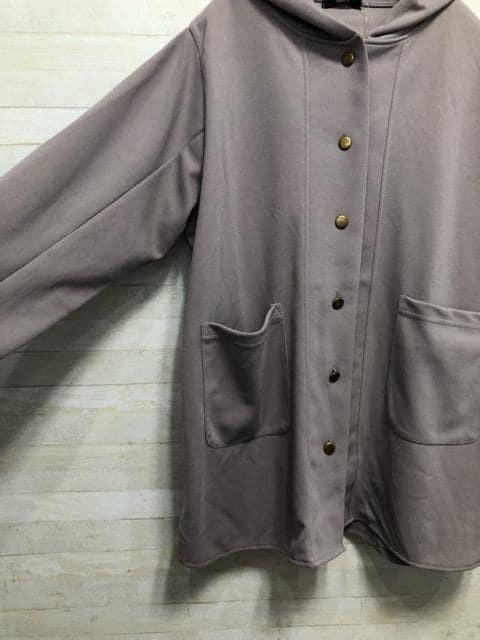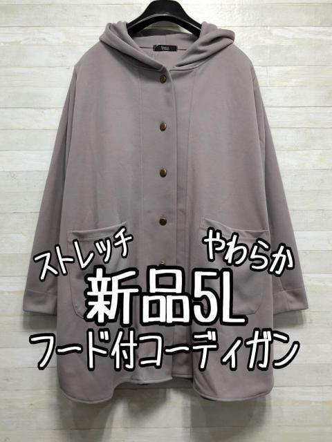新品☆5L♪グレージュ系♪フード付きカットソー風素材コーディガン☆f664
