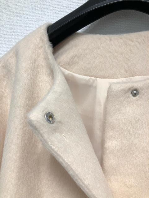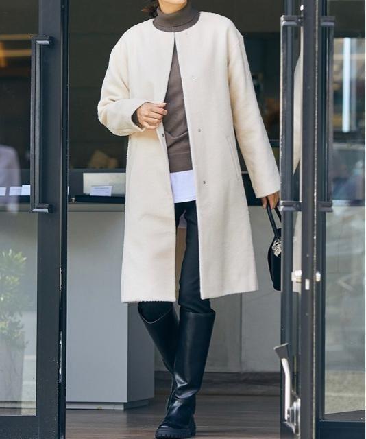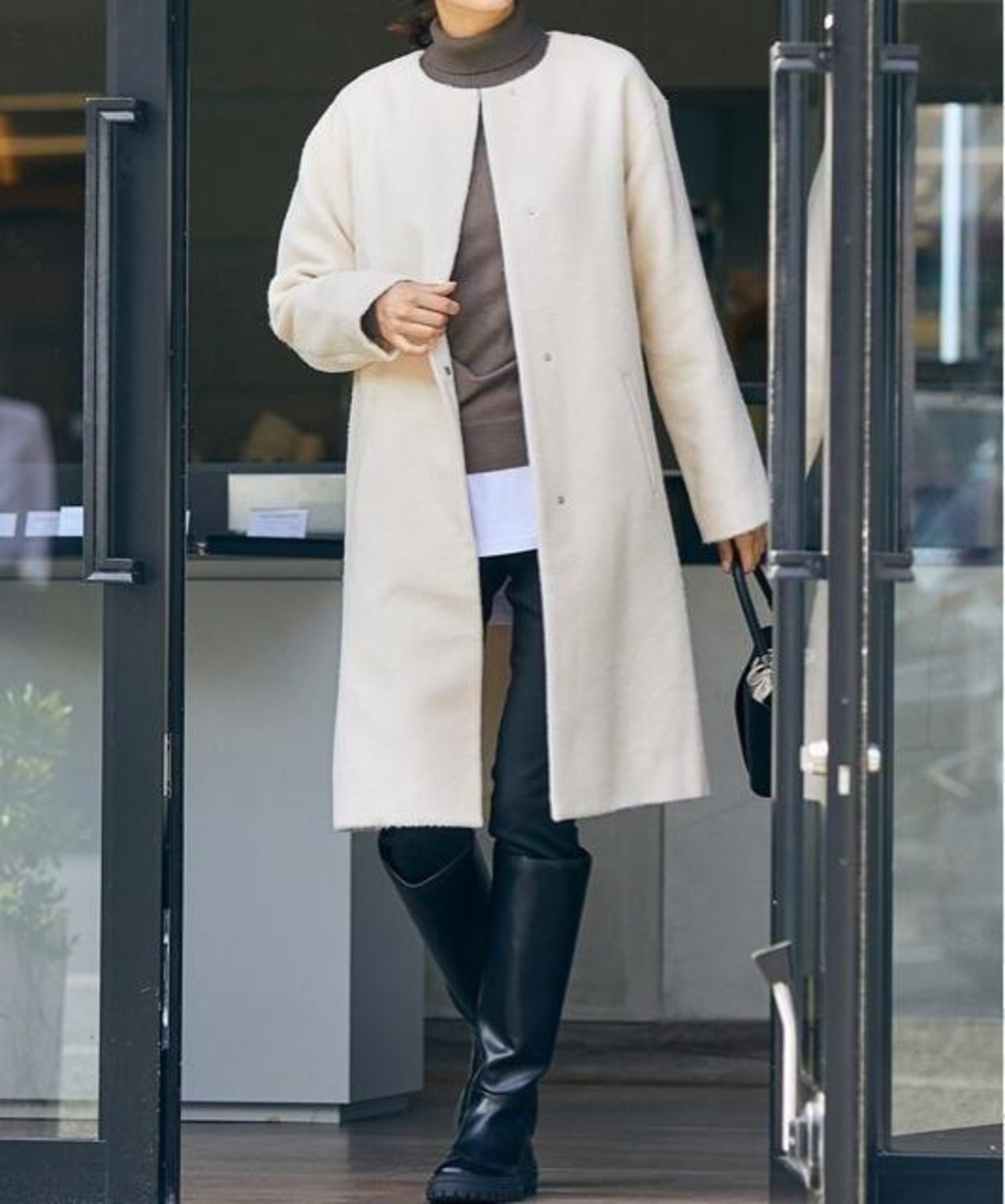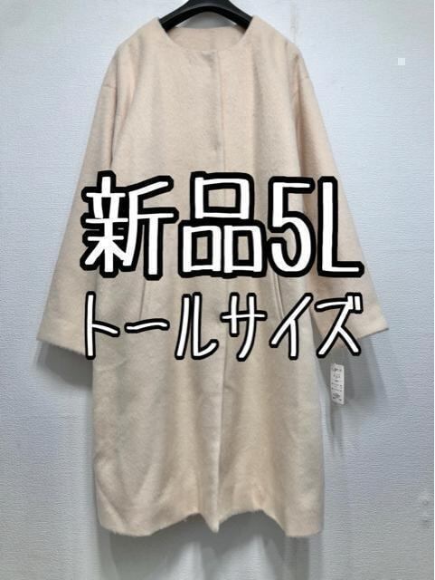 新品☆5Lトールサイズ♪ベージュ系♪ノーカラーきれいめコート☆w878