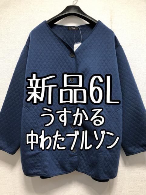 新品☆6Lブルー系♪ゆったりやわらか中わたブルゾン☆w628