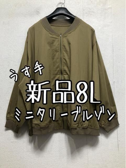 新品☆8L♪カーキ系♪うす手ミニタリーブルゾン♪コットン100%☆b529