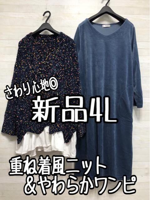 新品☆4L♪触り心地◎重ね着風ニット&やわらかワンピース〇A541