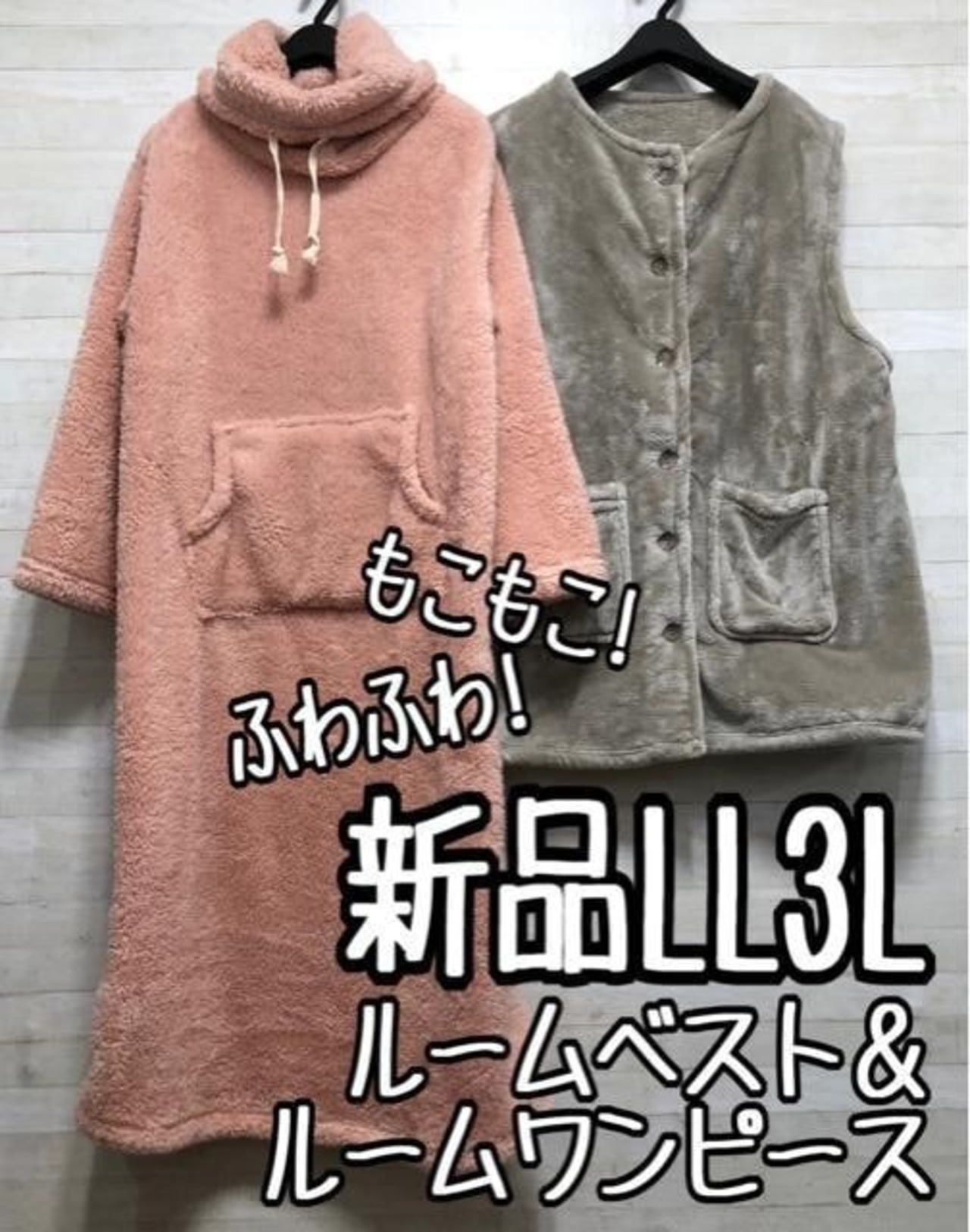 新品☆LL3Lふわぬく♪もこもこルームベスト&ルームワンピース〇A522