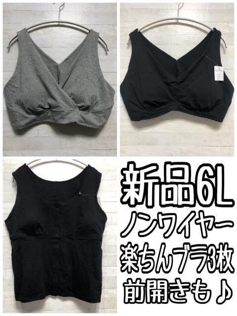 新品☆6L♪綿混素材ノンワイヤーブラ3枚セット♪前開きも〇A534
