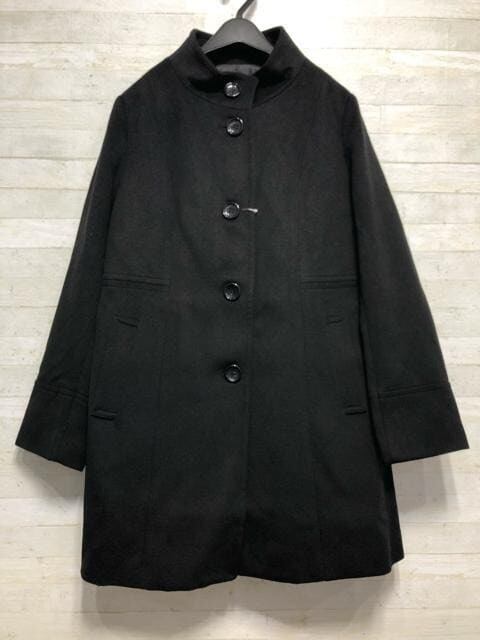 新品☆LL黒系無地♪上品なスタンドカラーコート♪きれいめ♪〇A587