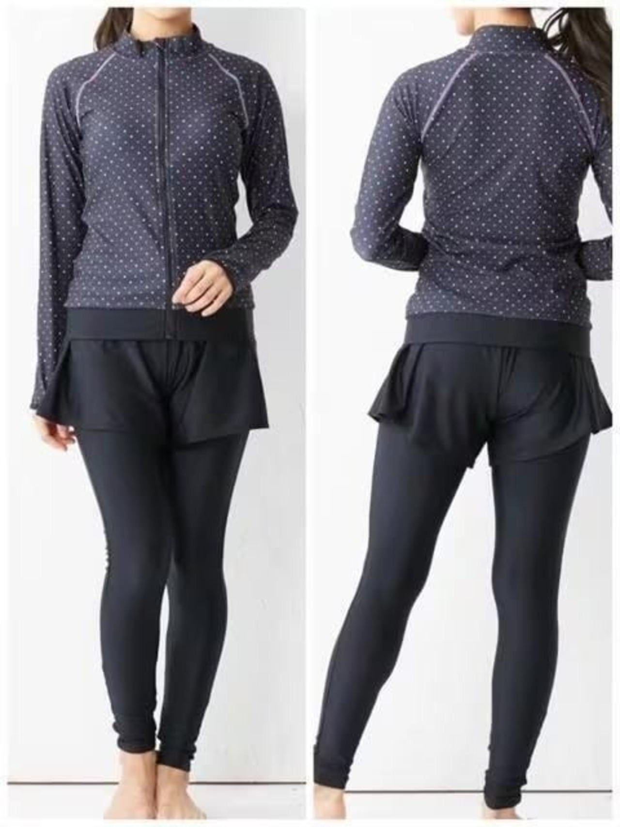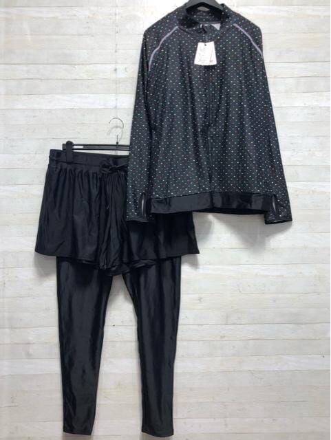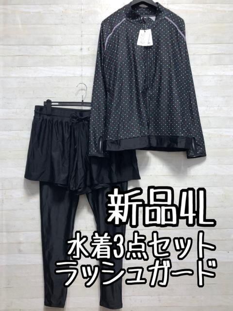 新品☆4L黒系♪UVカット水着3点セット♪ラッシュガード・レギンス♪〇A590