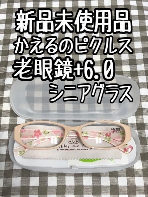 新品☆老眼鏡+6.0♪ベージュ系♪シニアグラス♪かえるのピクルス〇A616