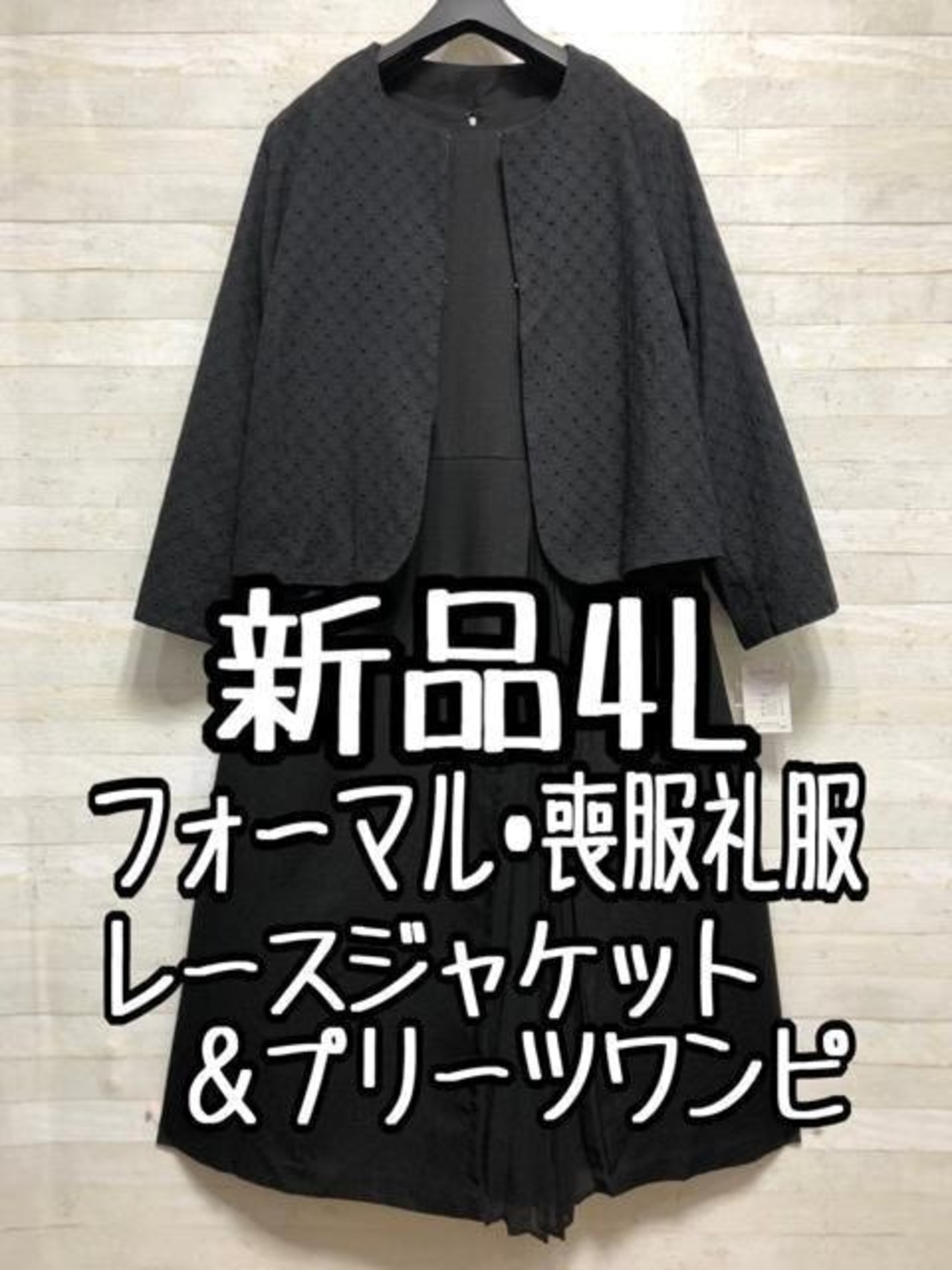 新品☆4L♪黒系♪デザインワンピース&レースジャケット♪フォーマル〇A620
