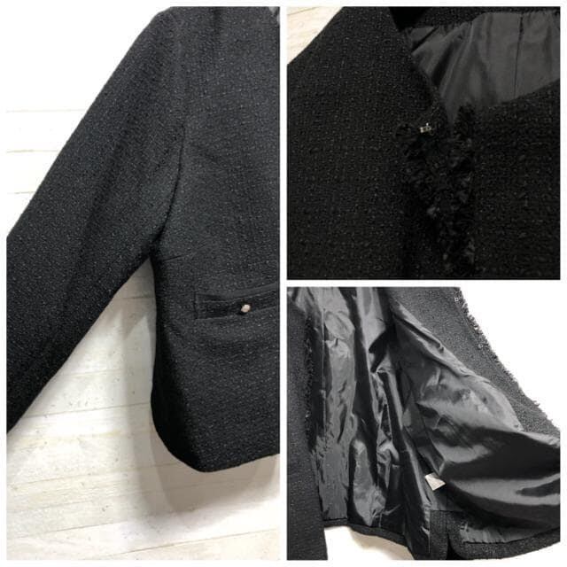 ・ツイード調ノーカラージャケット