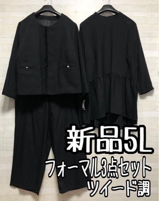 新品☆5L♪わけあり♪ツイード調ジャケット上品フォーマルパンツスーツ3点〇A633