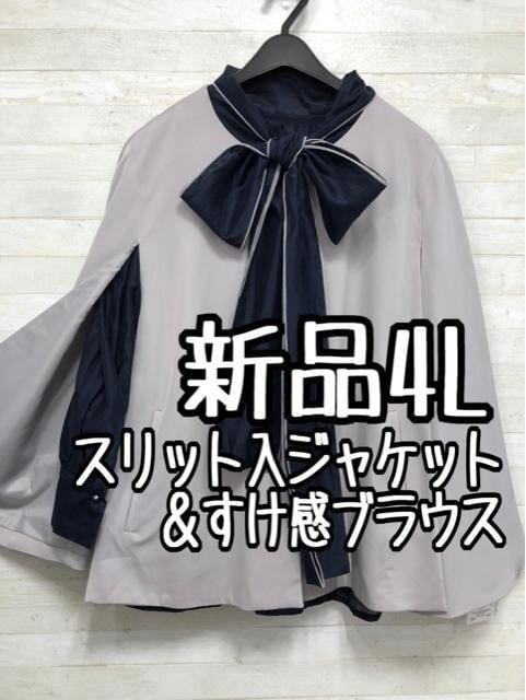 新品☆4L♪リボンかわいいブラウス&デザインジャケット♪フォーマル〇A648