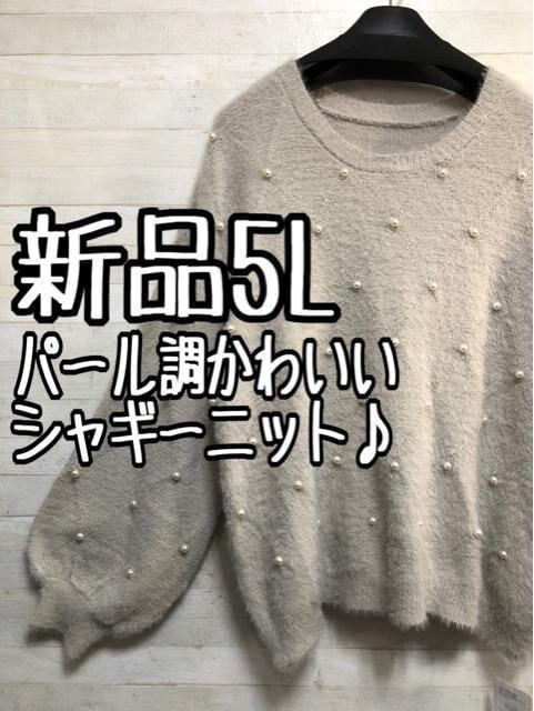 新品☆5L♪フェミニンなシャギーニット♪パール調ボタン〇A665