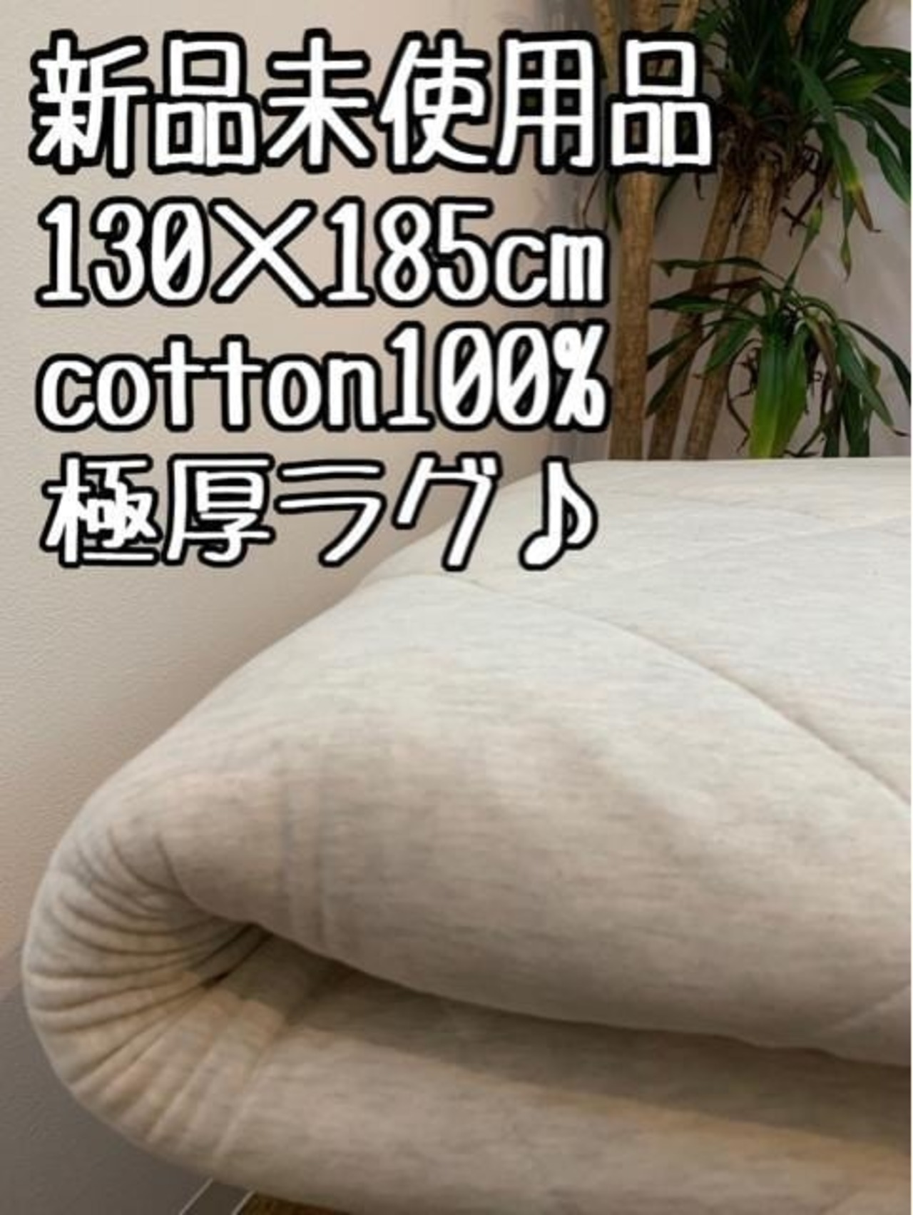 新品☆130×185cmアイボリー系♪コットン100%スウェット地の極厚ラグ♪〇B373