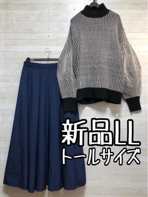 新品☆LLトール♪大人おしゃれコーデ♪ニット&ロンスカ♪1万円以上〇A694