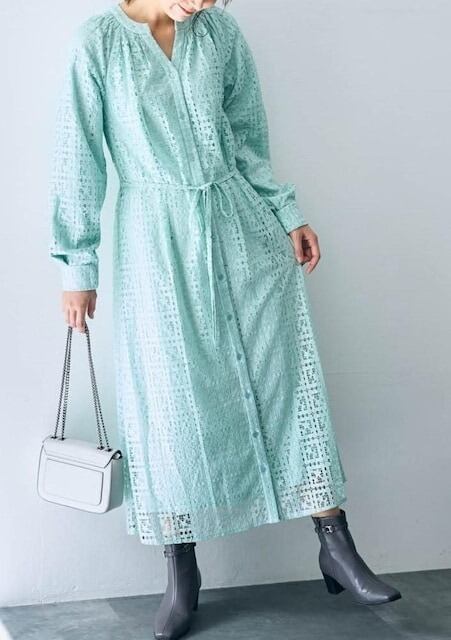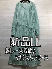 新品☆LL♪ミントグリーン系♪総レース素敵なロングワンピース〇A696