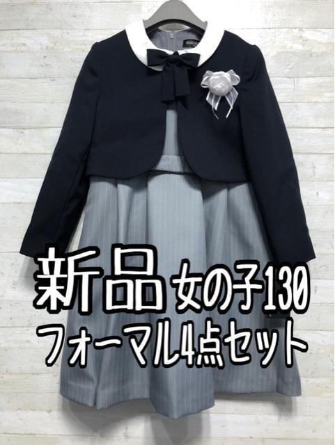 新品☆女の子130紺×グレー系♪フォーマルアンサンブル4点セット♪〇A760