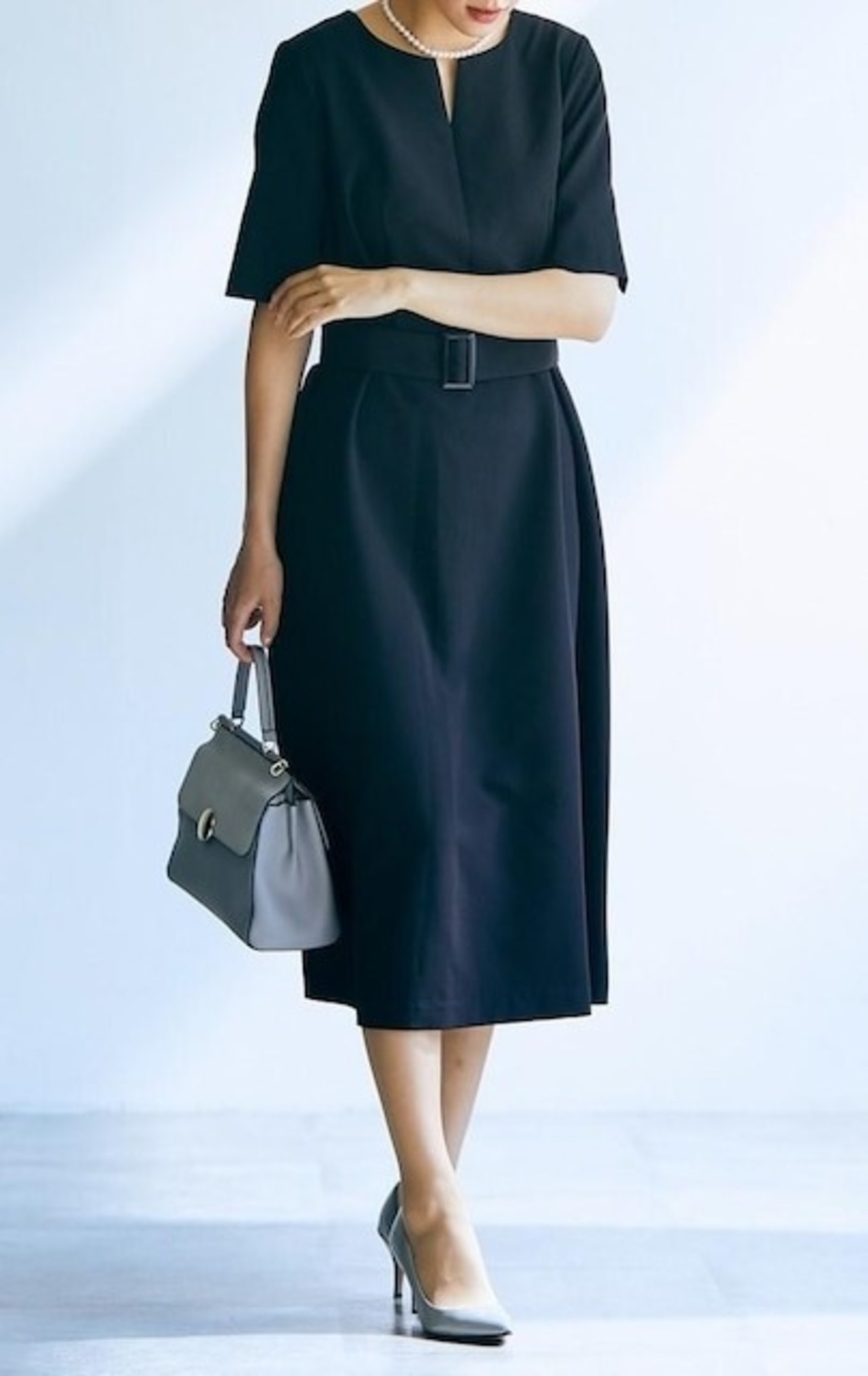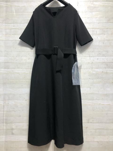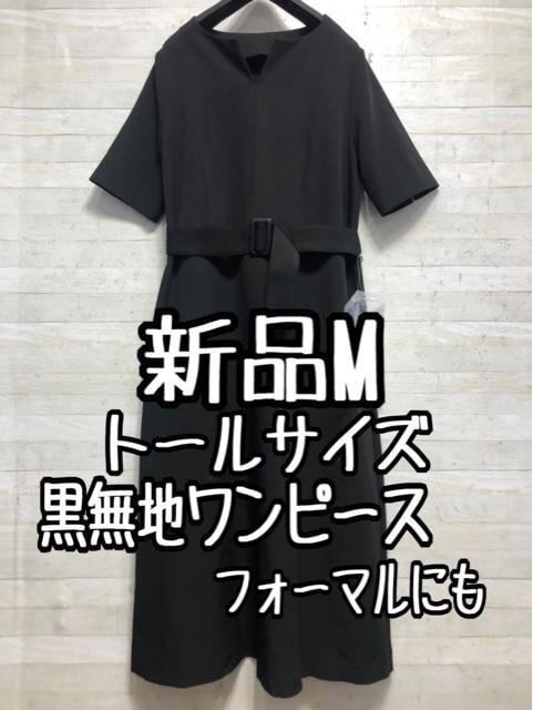新品☆Mトール黒系無地ストレッチきれいめワンピース〇A763