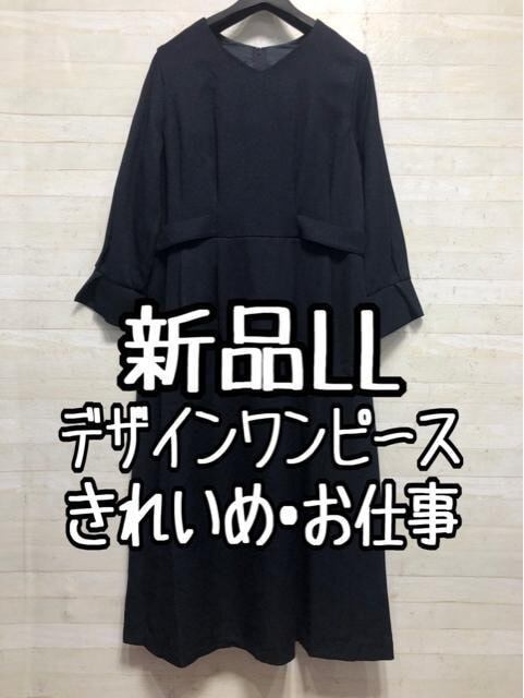 新品☆LL紺系お仕事やきれいめに♪デザインワンピース〇〇A764