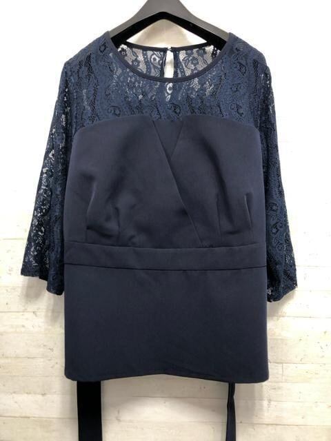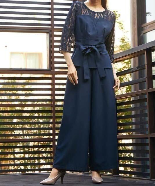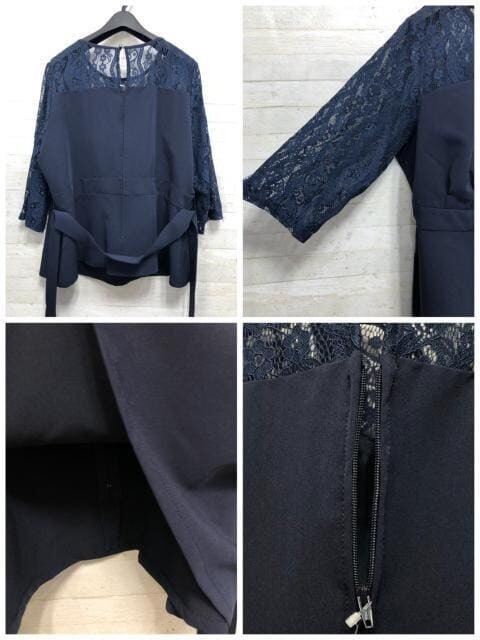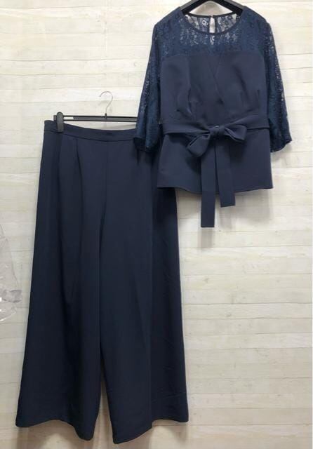 新品☆4L紺系レース切替ブラウス&ワイドパンツ♪結婚式〇A802