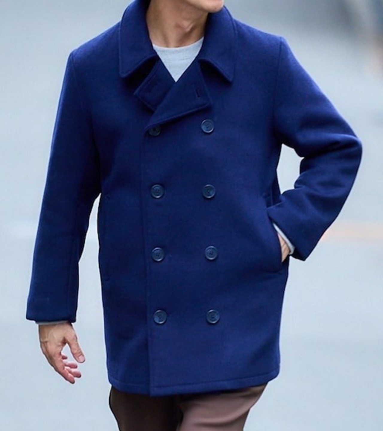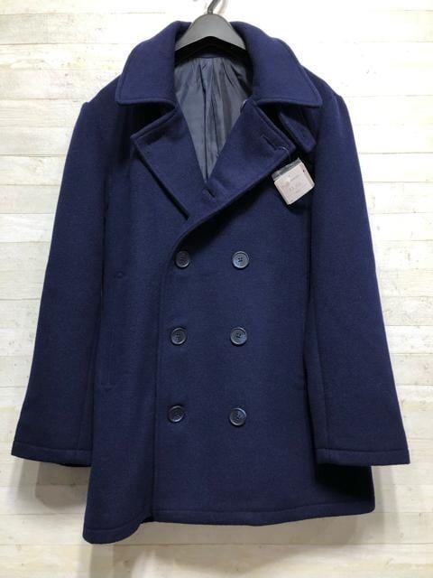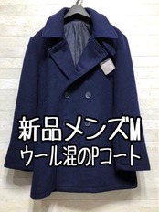 新品☆メンズM紺系ウール混のおしゃれピーコート!通勤にも〇B472