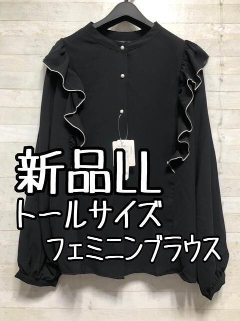 新品☆LLトール♪黒系♪フェミニンブラウス♪お出かけにも〇B481