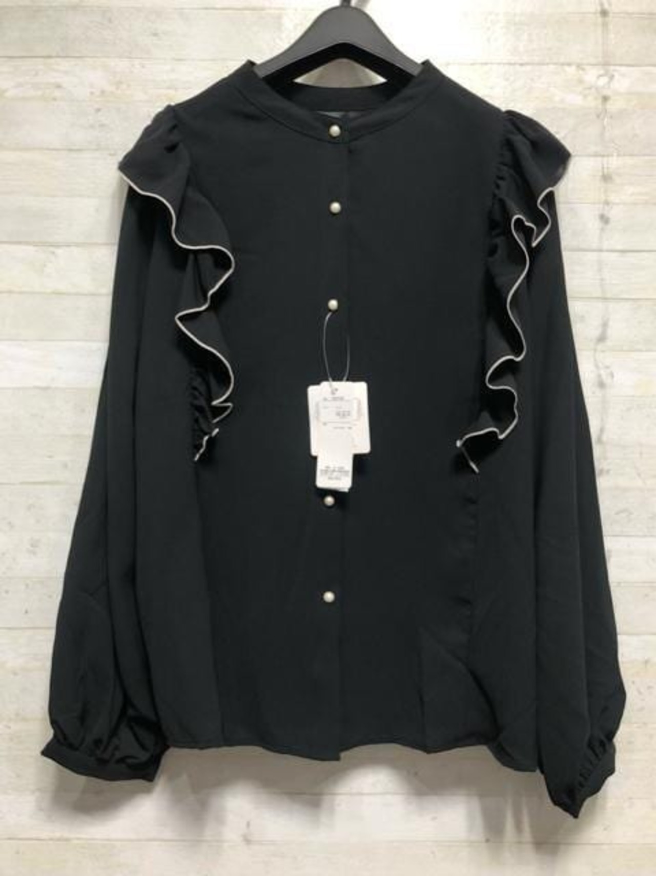 大きめのフリル&パール調ボタンかわいい♪