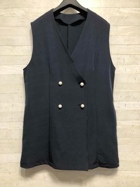 新品☆LL紺系パール調ボタン上品なジレ♪フォーマルにも〇B482