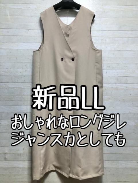 新品☆LLベージュ系♪ロング丈ジレ♪ジャンスカとしても♪〇B483