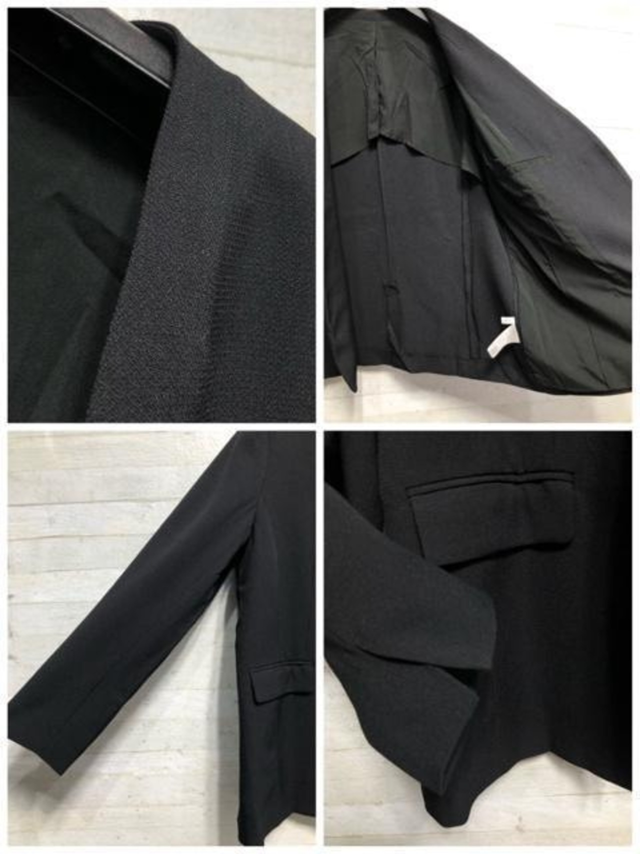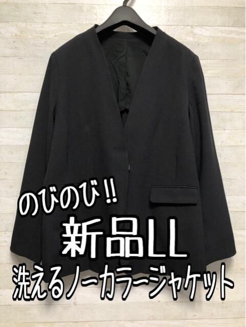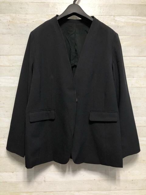 新品☆LL黒系無地ノーカラージャケットお仕事・フォーマル〇B494