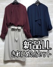 新品☆LL♪きれいめ3点セット♪ブラウス2枚&スリット入スカート〇A813