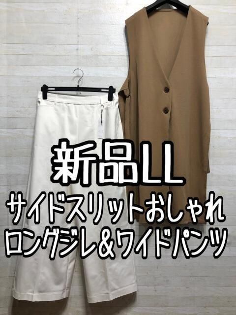 新品☆LL♪ロングジレ&ワイドパンツ♪おしゃれセット♪わけありも〇A819