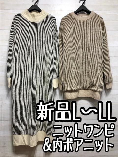 新品☆L~LL♪ニットワンピース&内ボアあったかニット〇A831