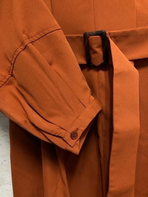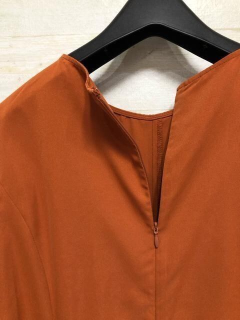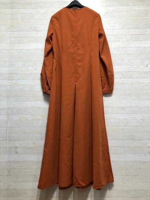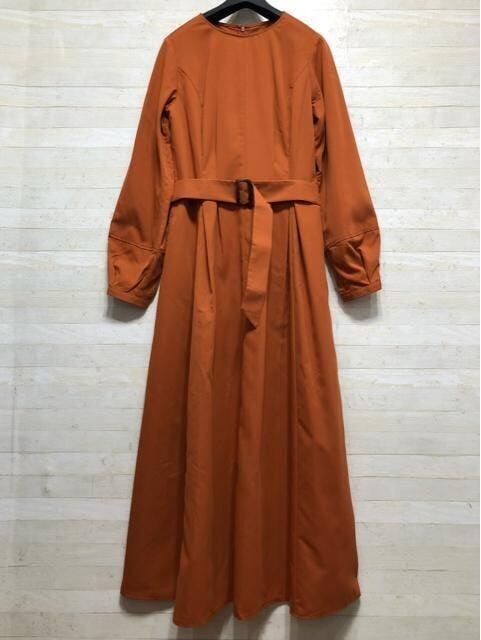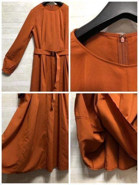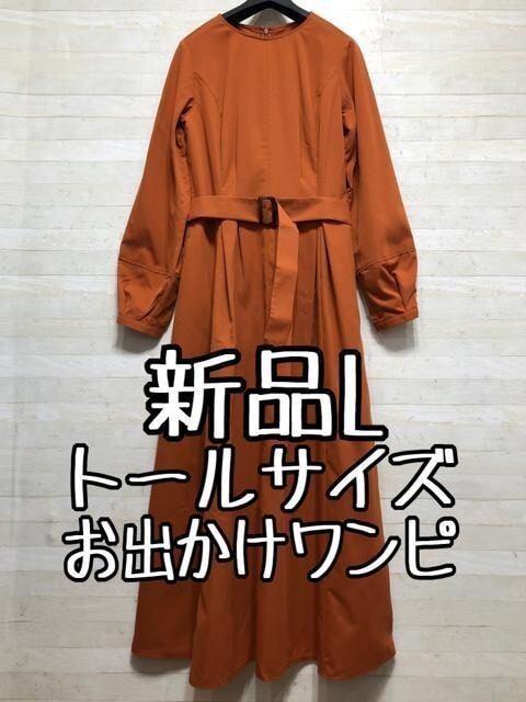 新品☆Lトール♪オレンジ系♪タックフレアおしゃれマキシワンピース〇B531
