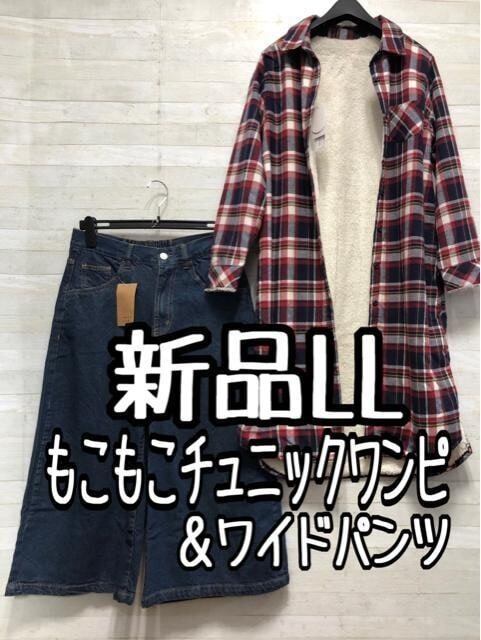 新品☆LLあったか内ボアチュニックワンピ&デニムワイドパンツ〇A844