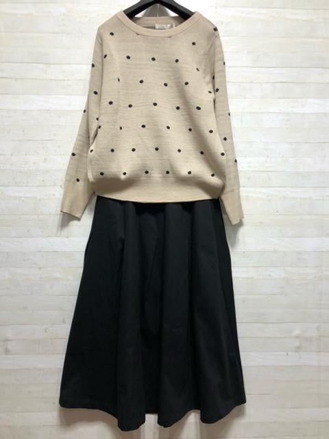 新品☆L~LL♪ドット柄ニット&綿100%マキシ丈スカート〇A850