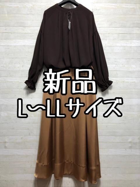 新品☆L~LL♪高級感のあるサテンのロングスカート&ブラウス〇A820