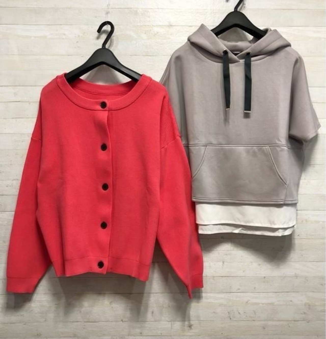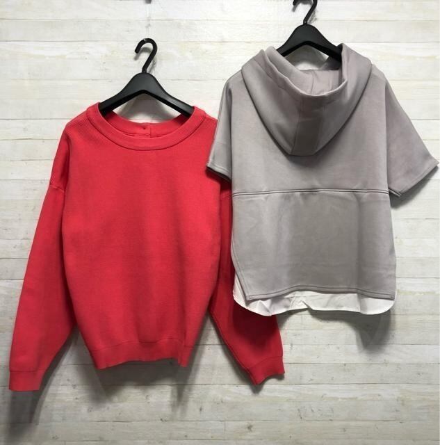 新品☆LL♪重ね着風パーカー&2wayニットカーデ♪わけあり〇A852