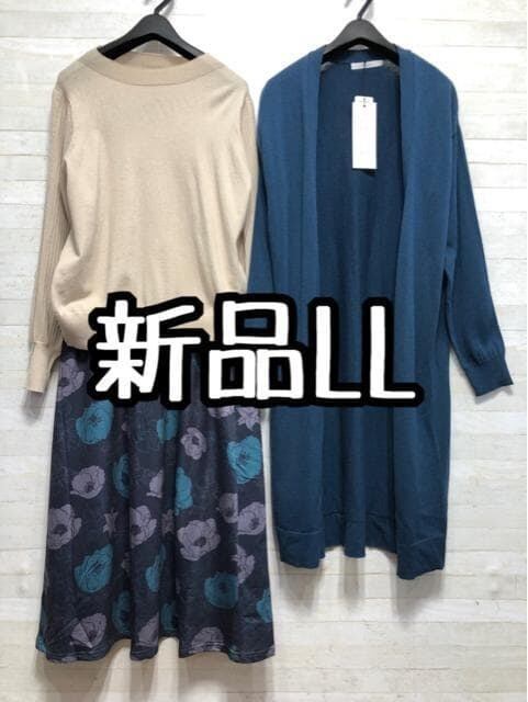新品☆LL♪ニット&ロングトッパーカーデ&ロングスカート〇A855