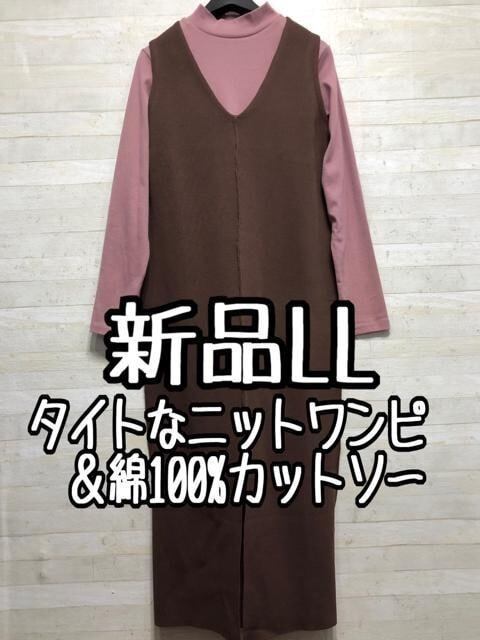 新品☆LL♪おしゃれ重ね着セット♪ロングニットワンピースも♪〇A860