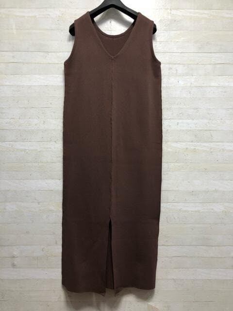 ニット素材のノースリーブワンピースと