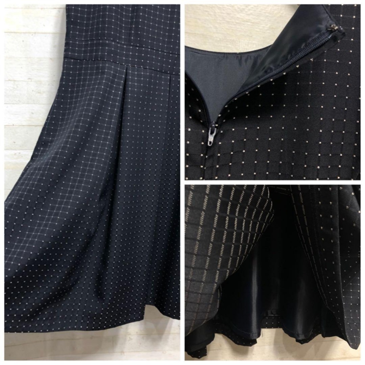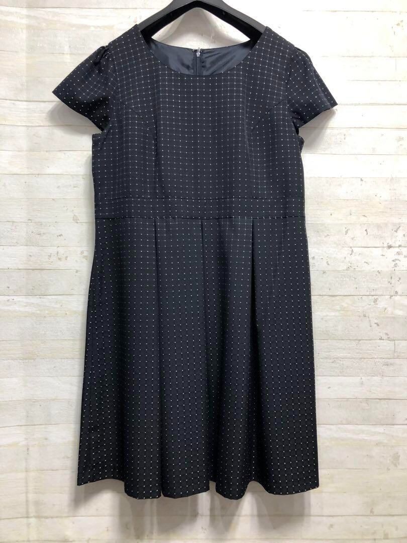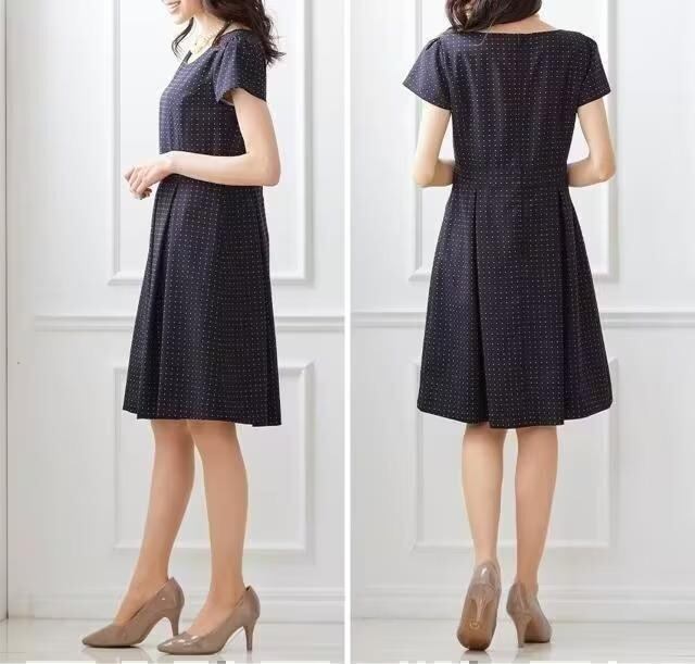 ・紺系ドット織り柄のワンピース