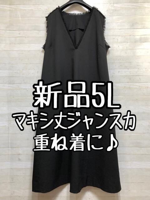 新品☆5L黒系♪マキシ丈ジャンスカ♪重ね着コーデに♪〇B557