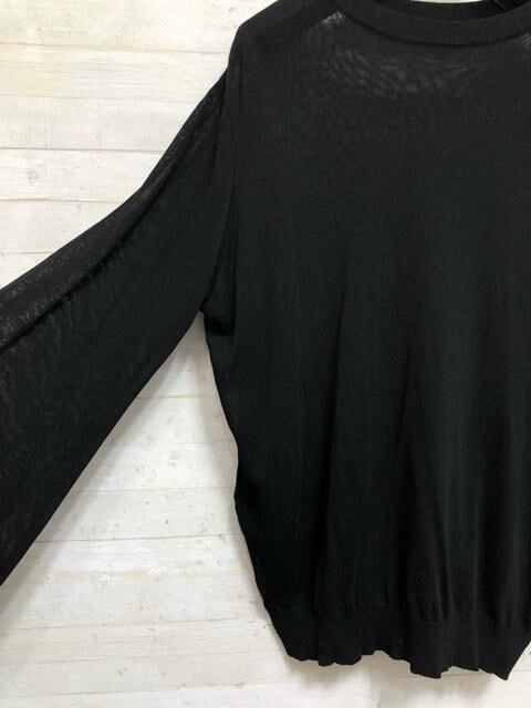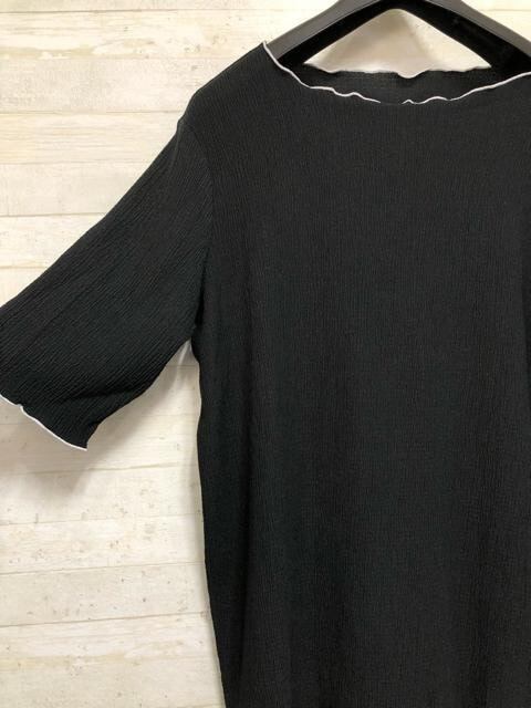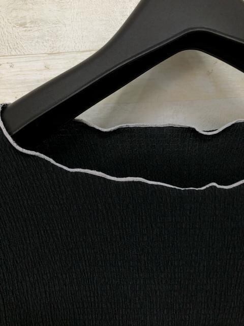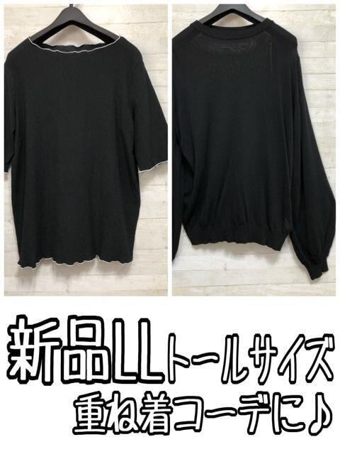 新品☆LLトール黒系♪シアーニット&シャーリング5分袖トップス〇B560