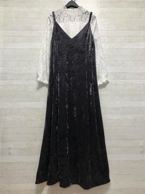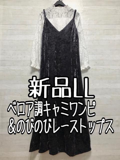 新品☆LL♪クラッシュベロアのロングキャミワンピ&ストレッチレーストップス〇B565