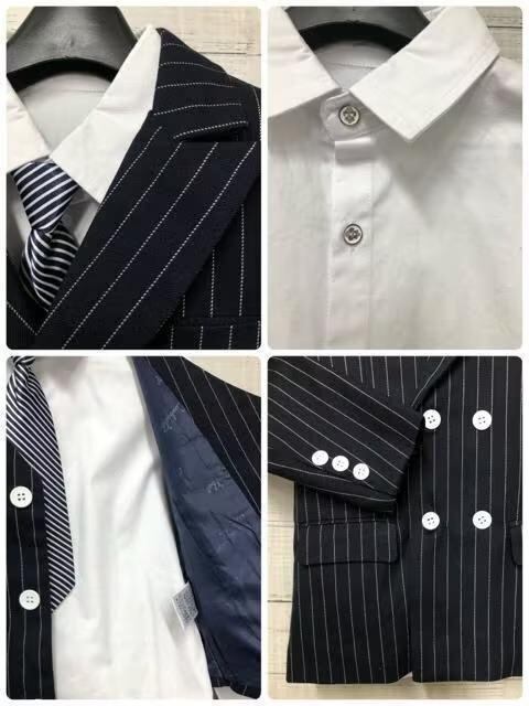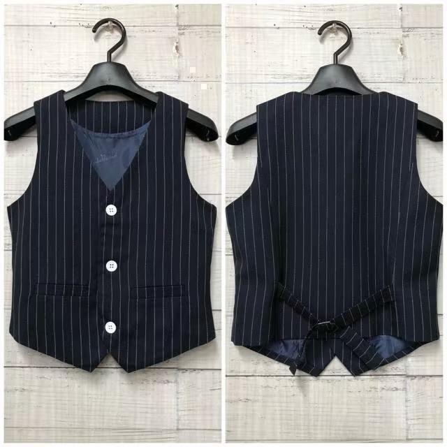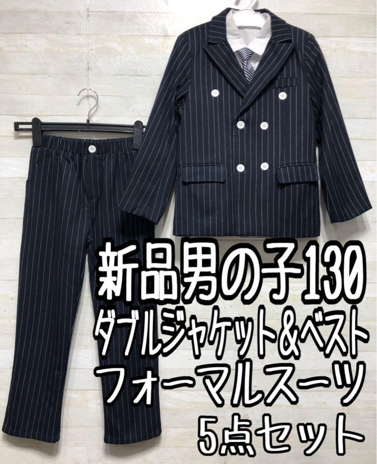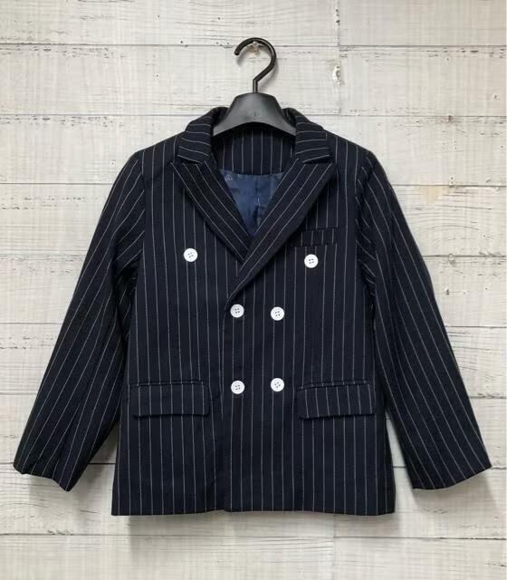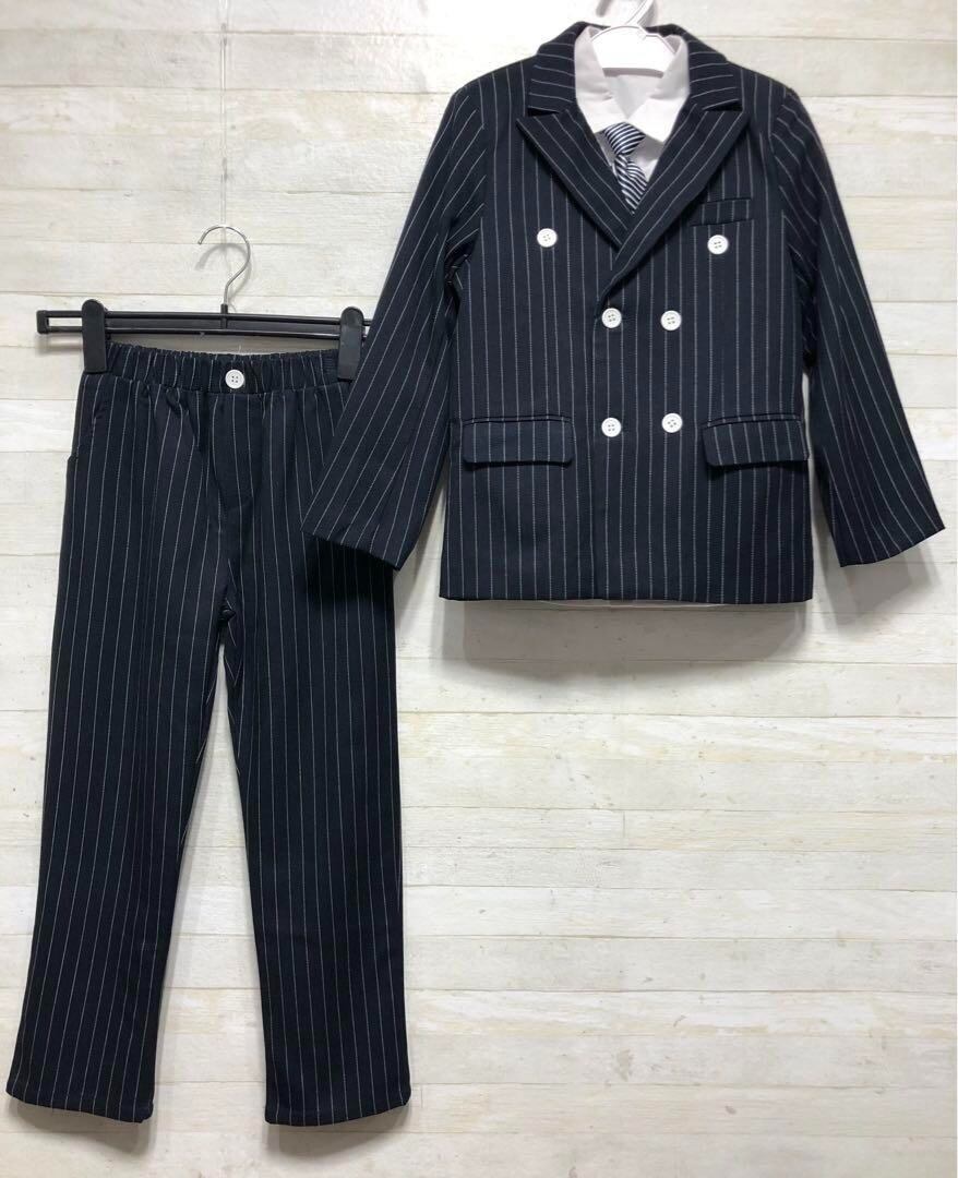 新品☆男の子130紺系ストライプ♪ダブルのスーツ5点♪入学式フォーマル◯B997
